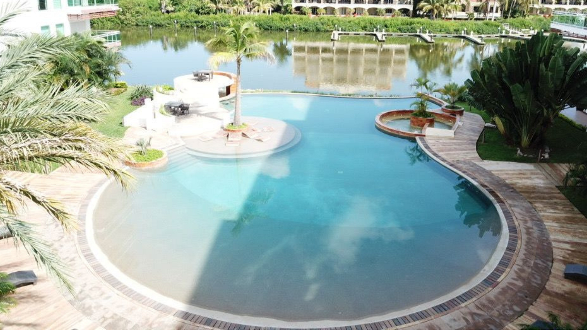Relájate en nuestra alberca tipo playa con vistas panorámicas al canal de navegación.