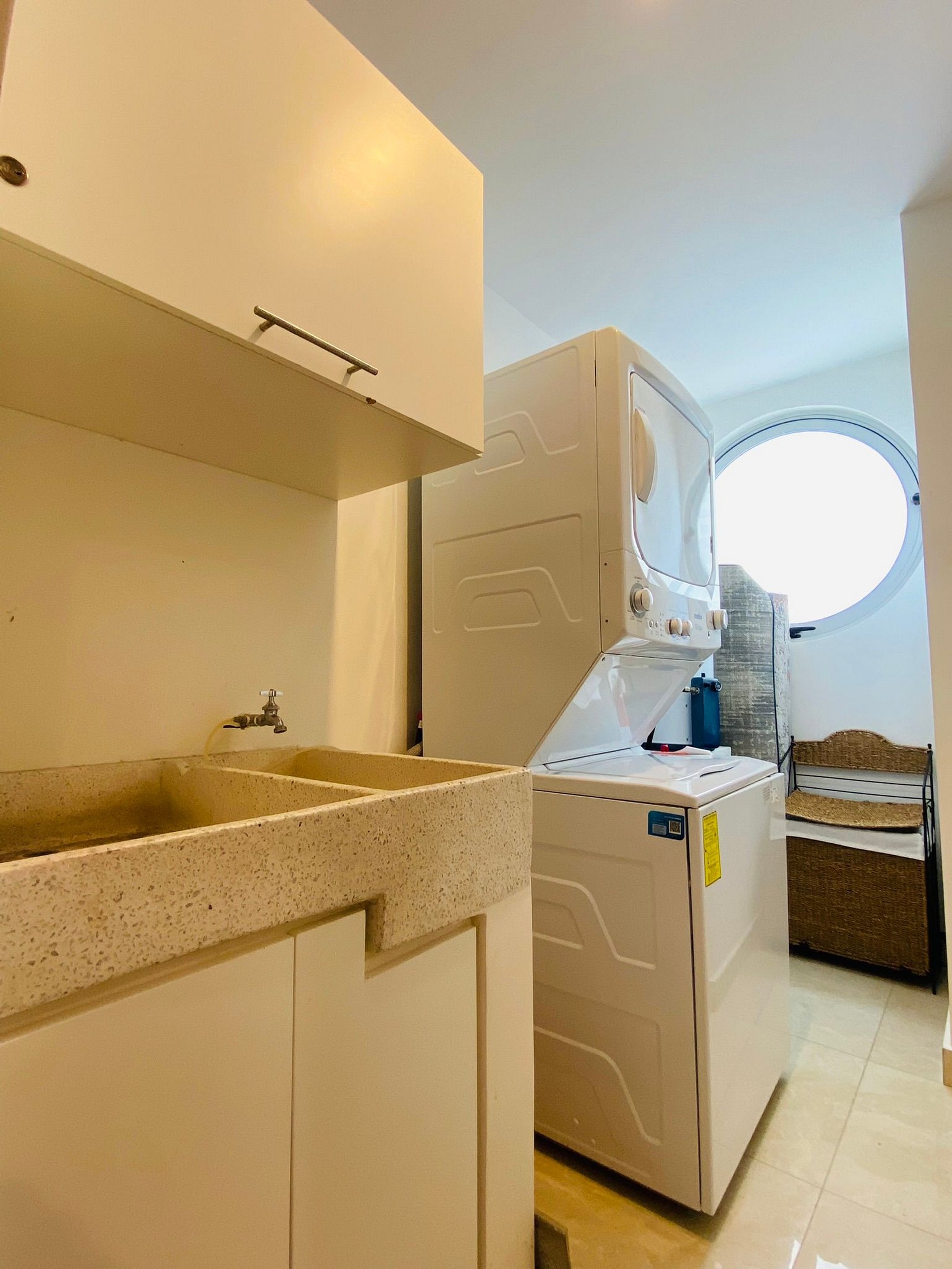 Centro de lavado con lavadora y secadora.