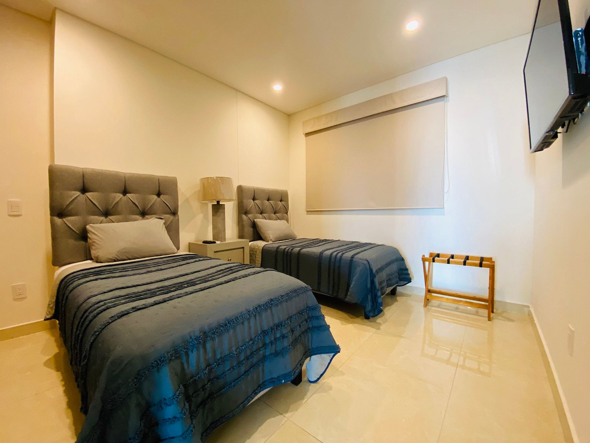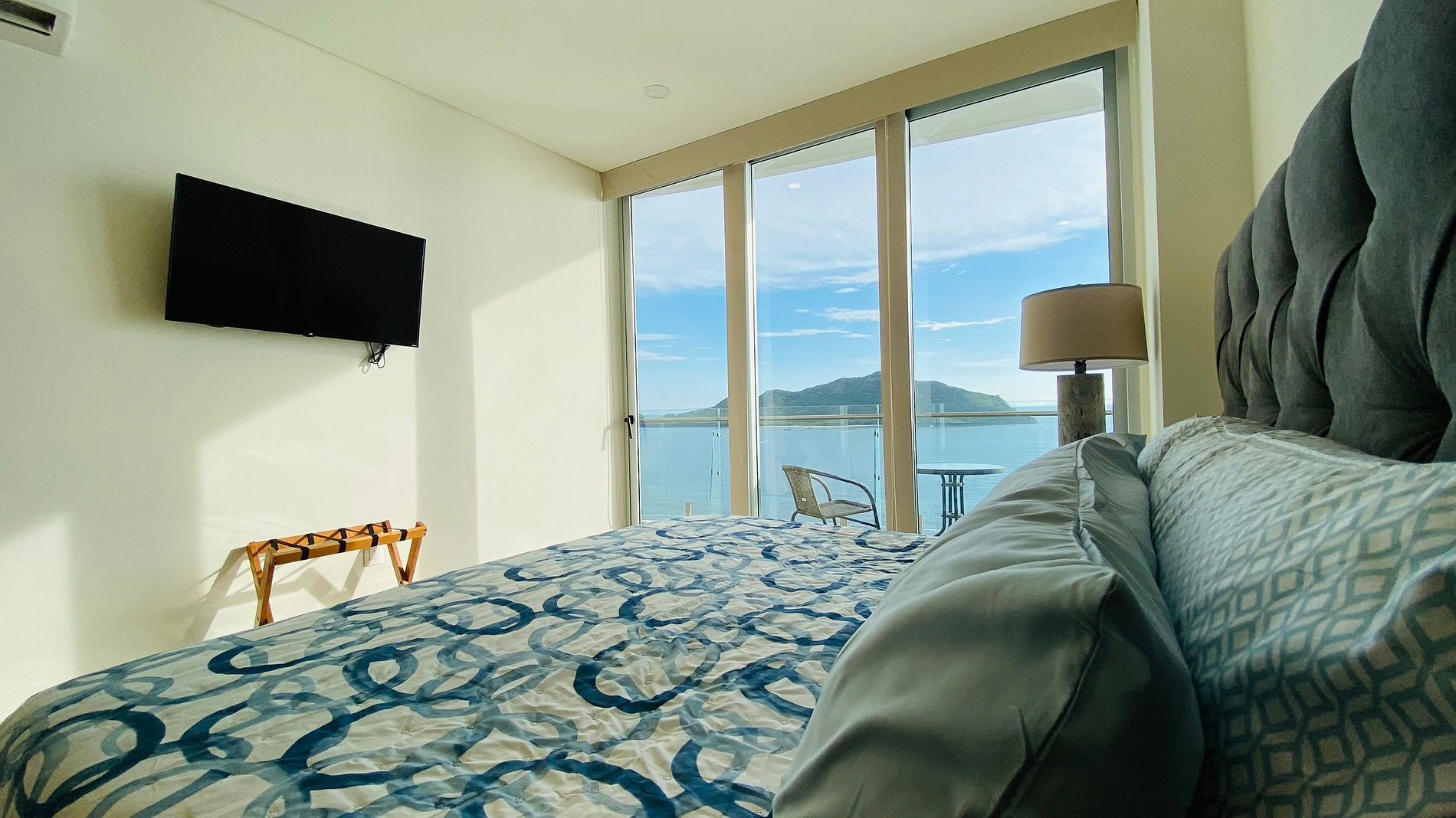 Recamara Principal: 1 Cama kingsize, TV, closets, baño completo, balcón con vista al mar.