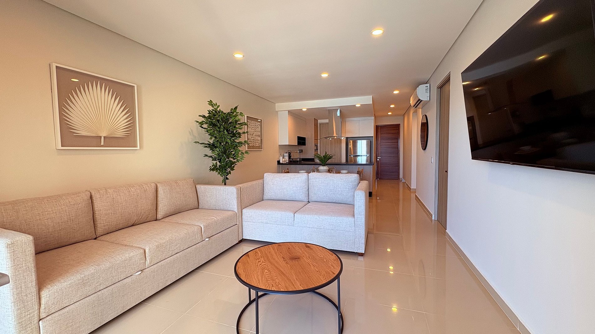 Este amplio departamento de 2 recámaras ha sido diseñado para combinar comodidad funcional con un estilo relajado y sofisticado. La decoración, en tonos claros y naturales, se complementa con mobiliario tradicional moderno que invita a descansar, convivir y reconectar.