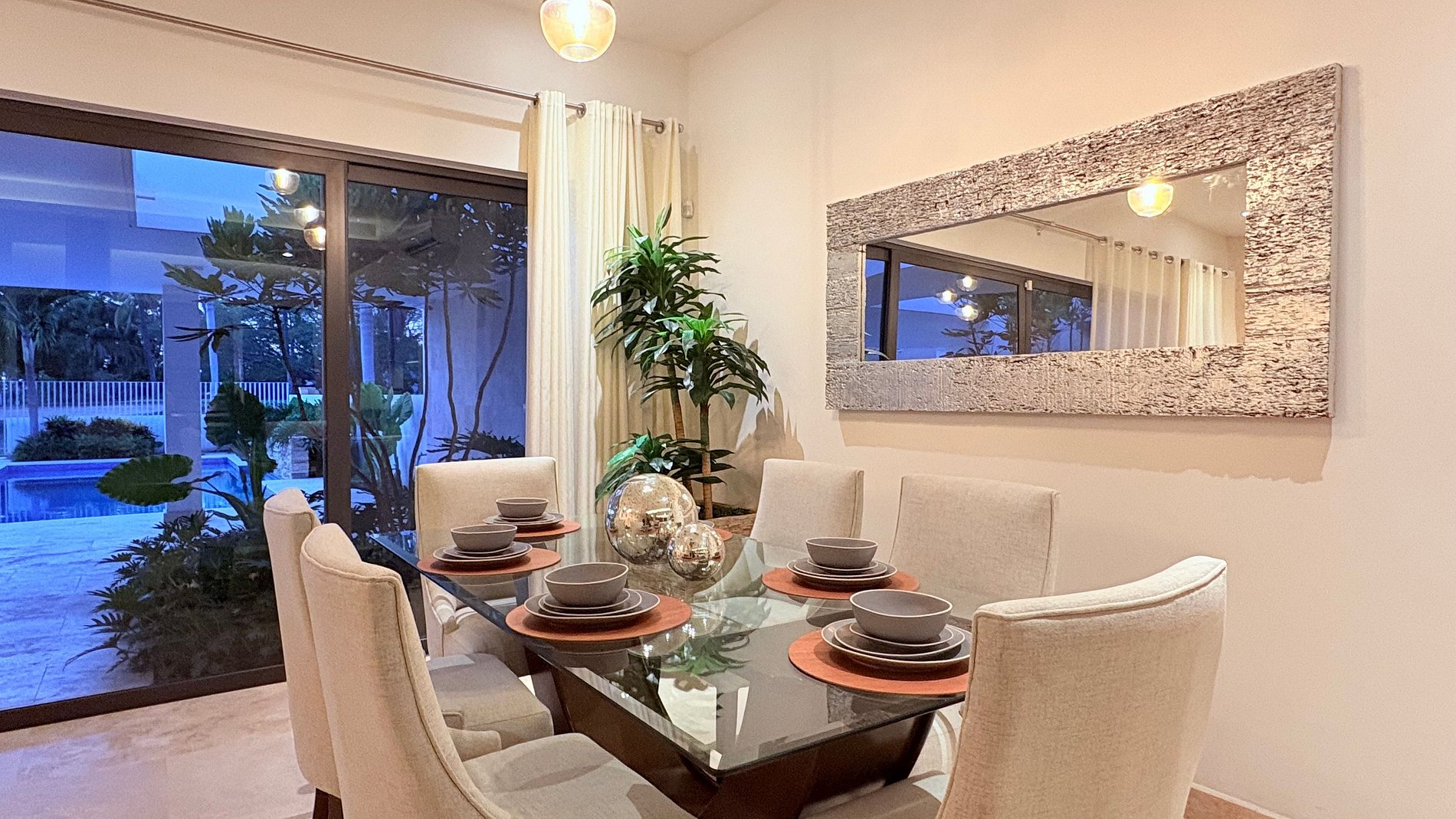El hogar se encuentra justo frente al campo de golf, lo que ofrece no solo una vista relajante, sino también la posibilidad de paseos serenos al amanecer o atardecer. Este entorno, seguro y armonioso, es ideal para quienes desean desconectarse con estilo sin renunciar a la cercanía de los mejores atractivos turísticos de Mazatlán.